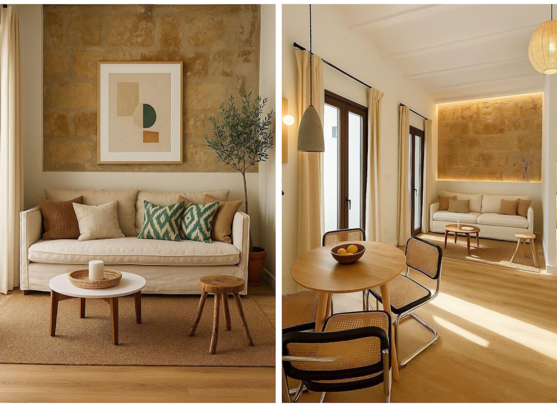 This home perfectly balances modern functionality with Mediterranean character, preserving traditional elements such as exposed natural stone walls that add warmth and charm.