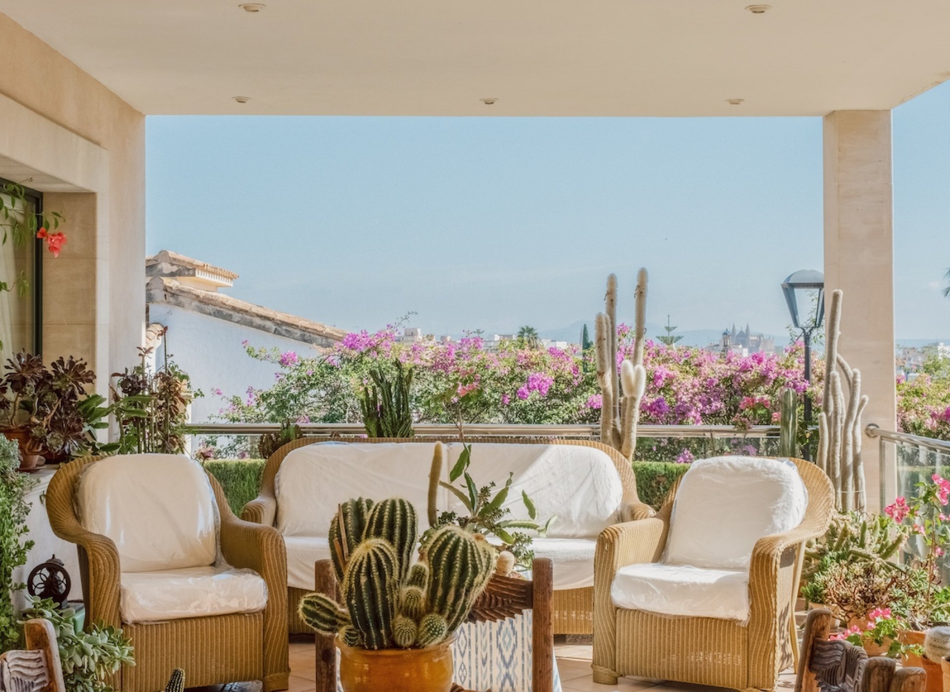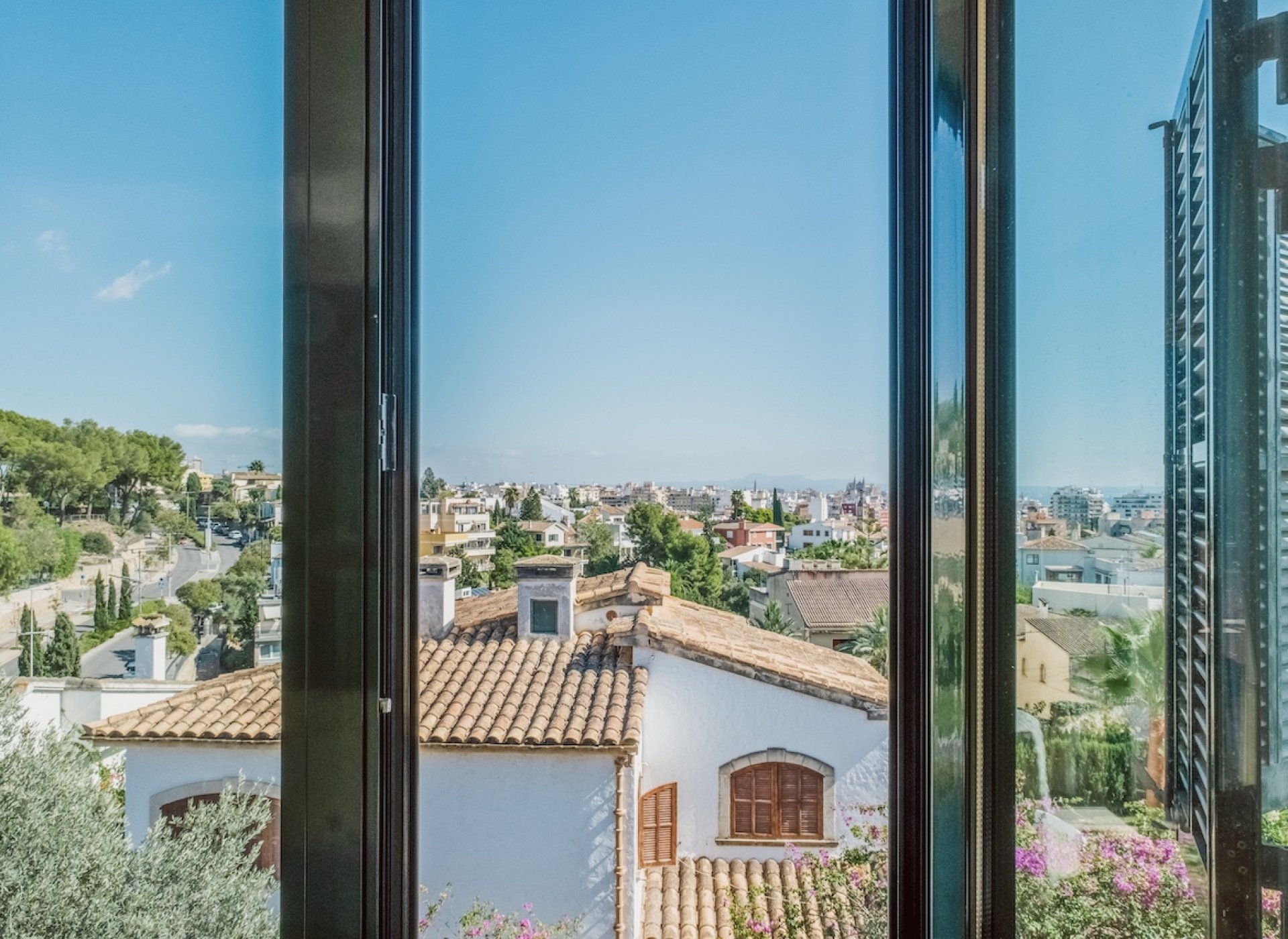 The house was built in 2000, and thanks to its high position, it offers incredible views of the Cathedral and the city of Palma de Mallorca.