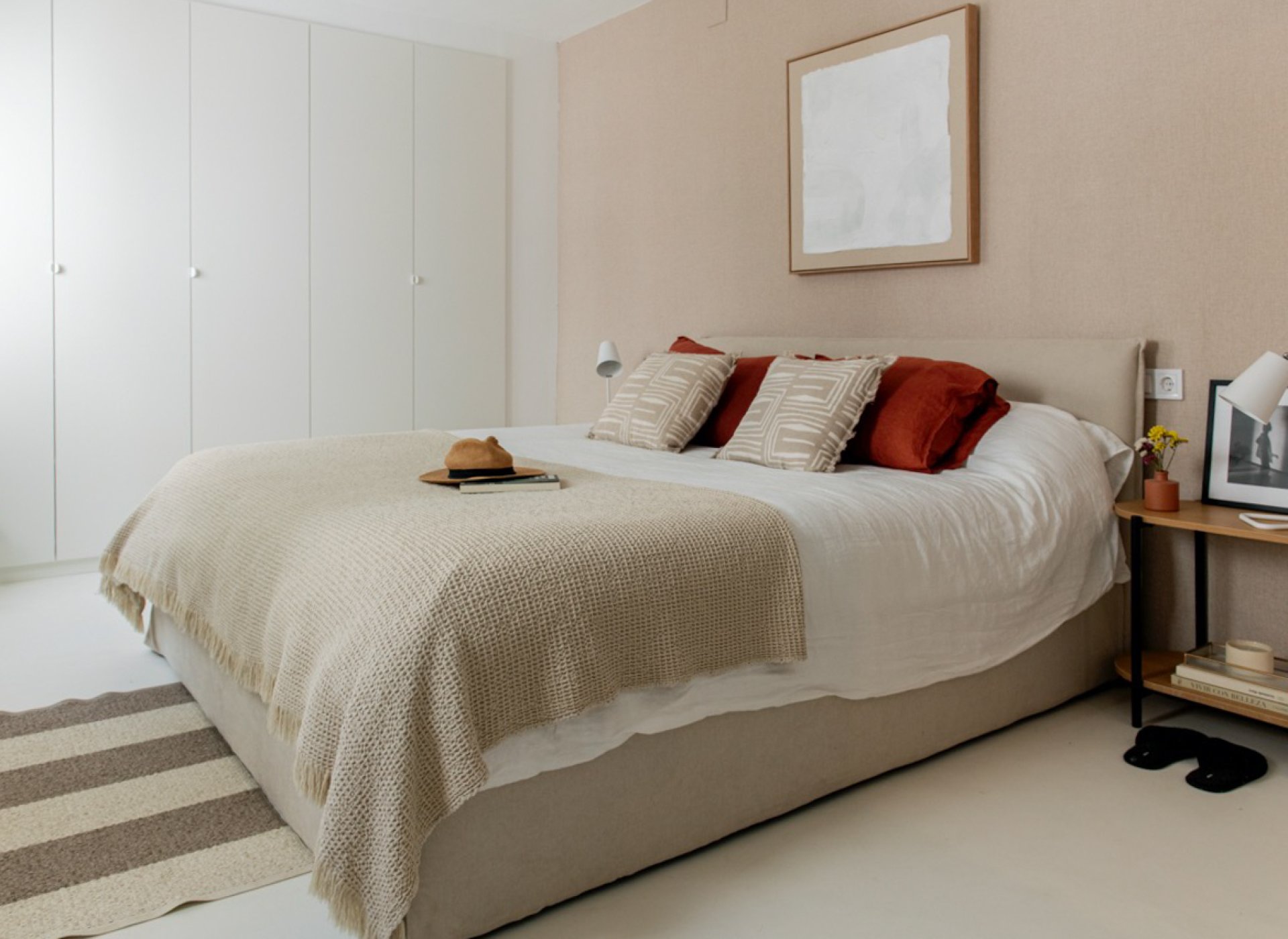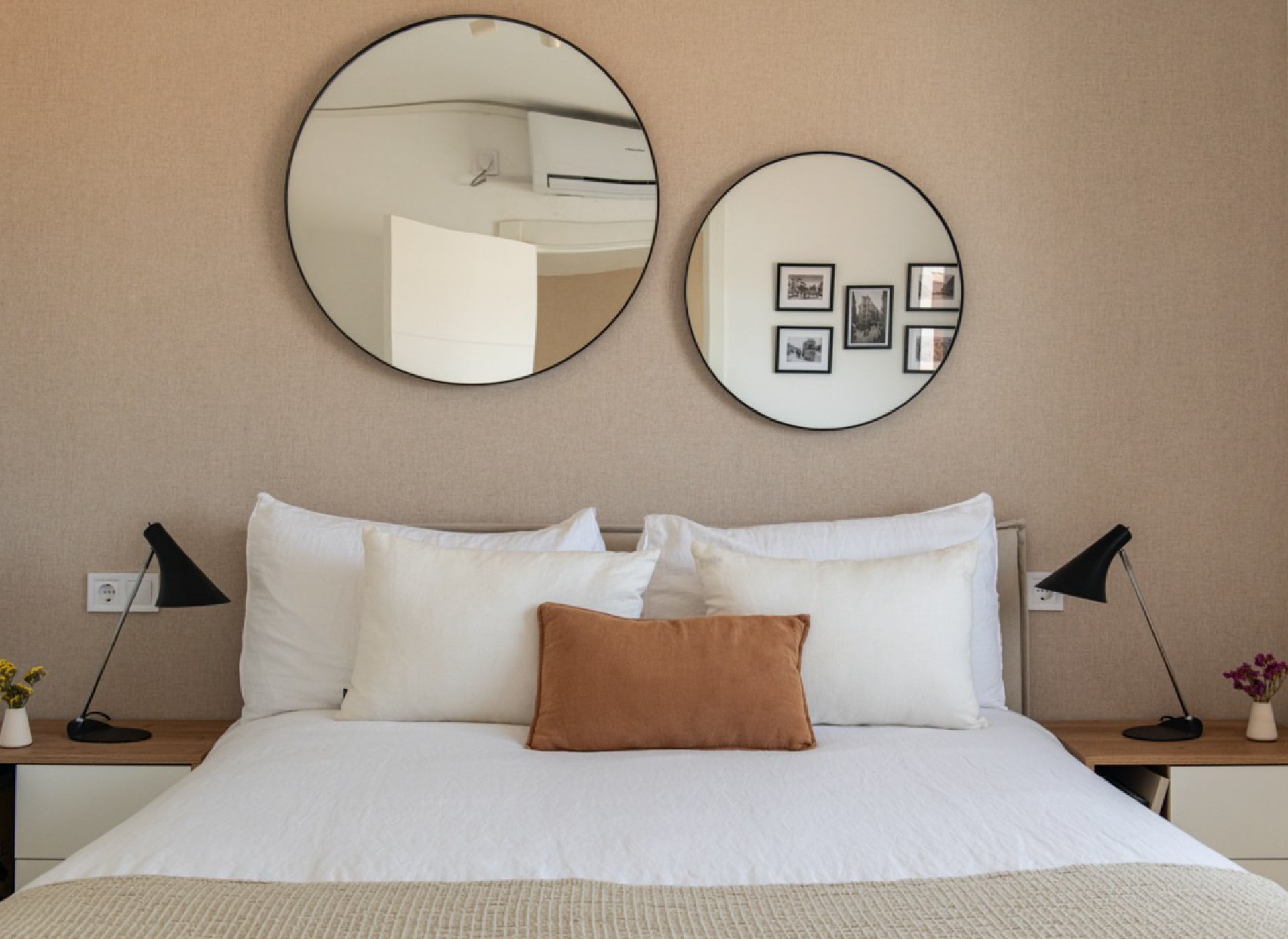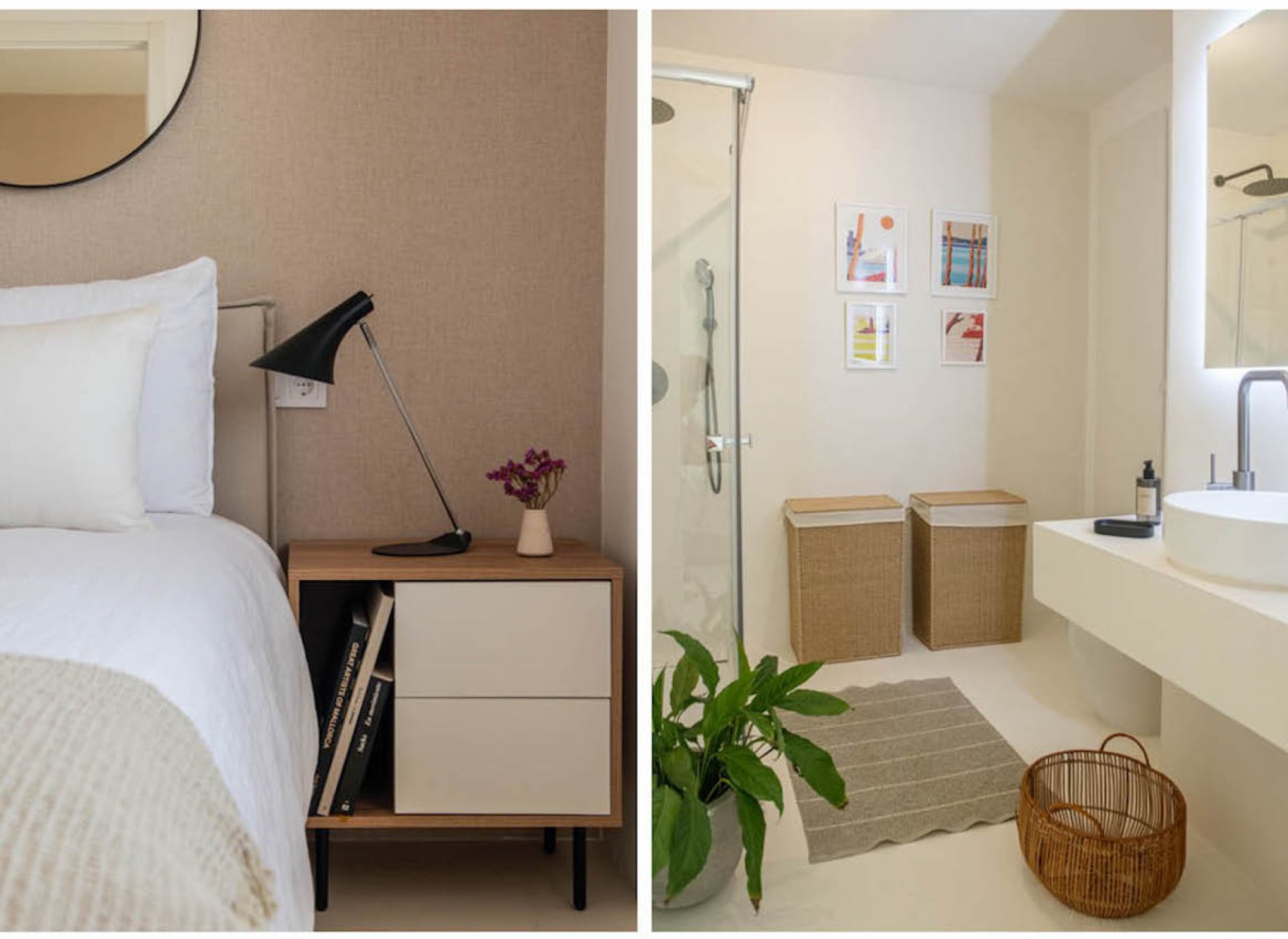 The master bedroom has a king-size bed, built-in wardrobes, and an en-suite bathroom. The second bedroom enjoys plenty of natural light and unobstructed mountain views, furnished with a queen-size bed and built-in wardrobes, and a second bathroom with a shower.