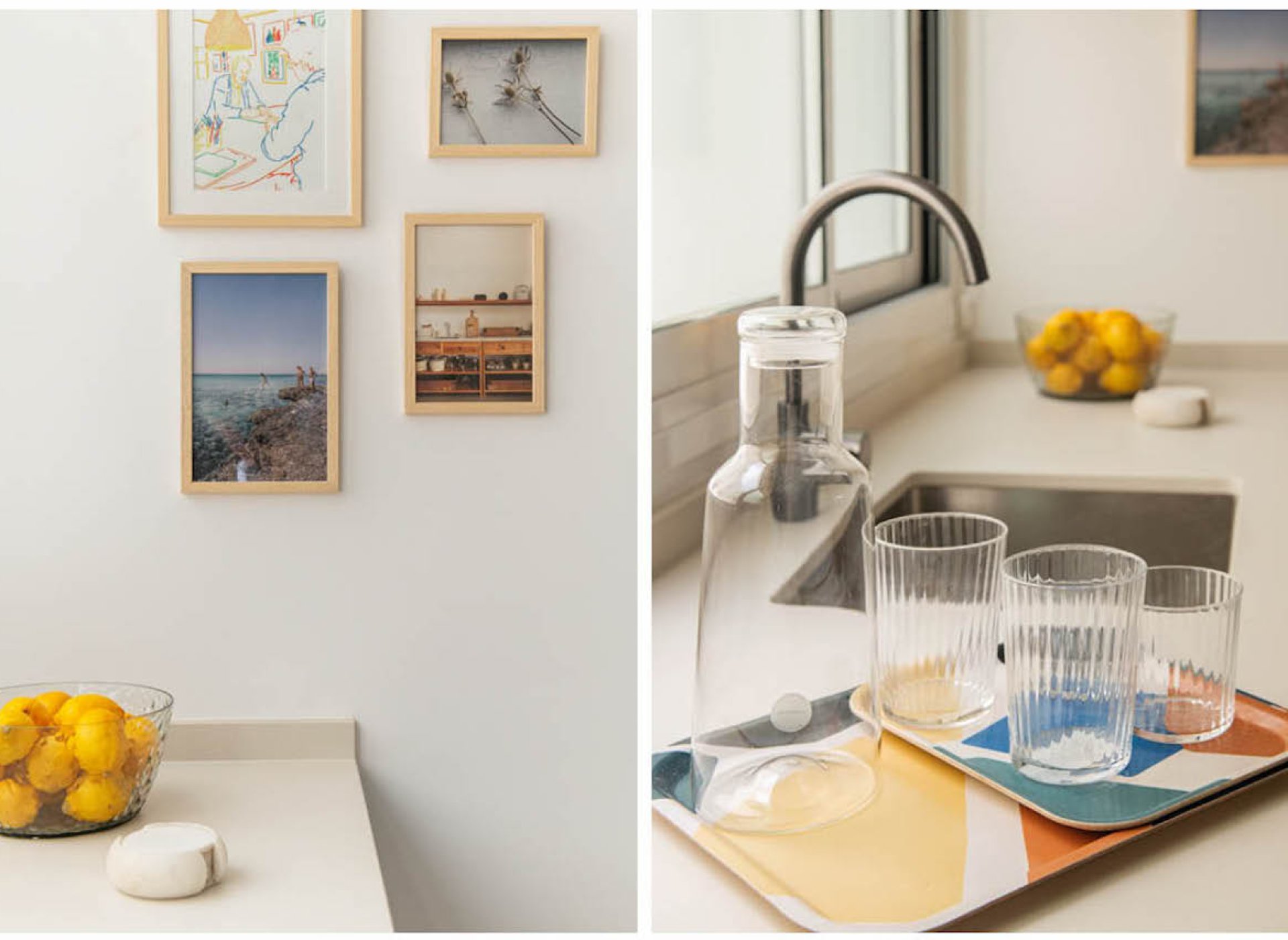 The property features a bright and spacious living-dining area with a cosy balcony with partial sea views, completing the layout — an ideal spot to unwind. The open plan kitchen is fully equipped, including a dishwasher, oven, washing machine, refrigerator, and elegant marble countertops.
