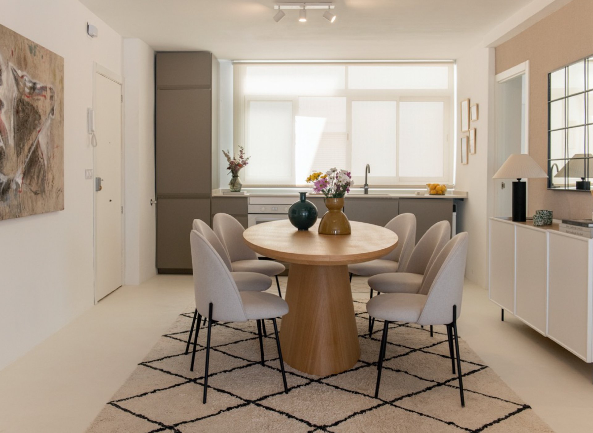 The apartment has been completely renovated, with new plumbing, electrical systems, motorised shutters, double-glazed windows for thermal and acoustic insulation, polished micro-cement flooring, and custom blinds. Its bright, corridor-free layout maximises space, making the home practical and inviting. It is located on the 4th floor in a building without an elevator.