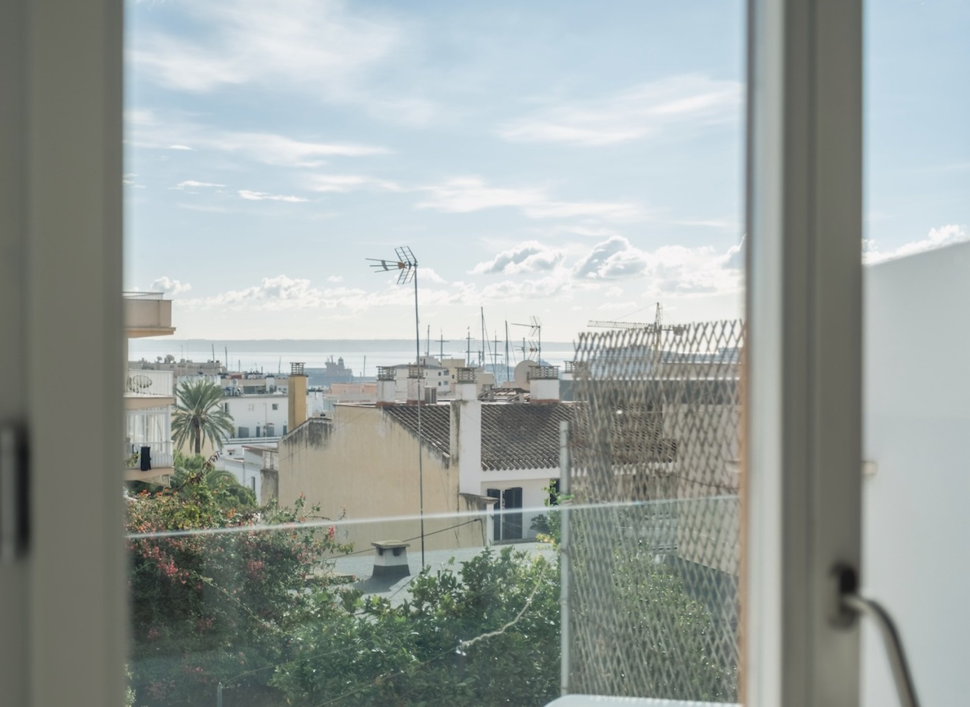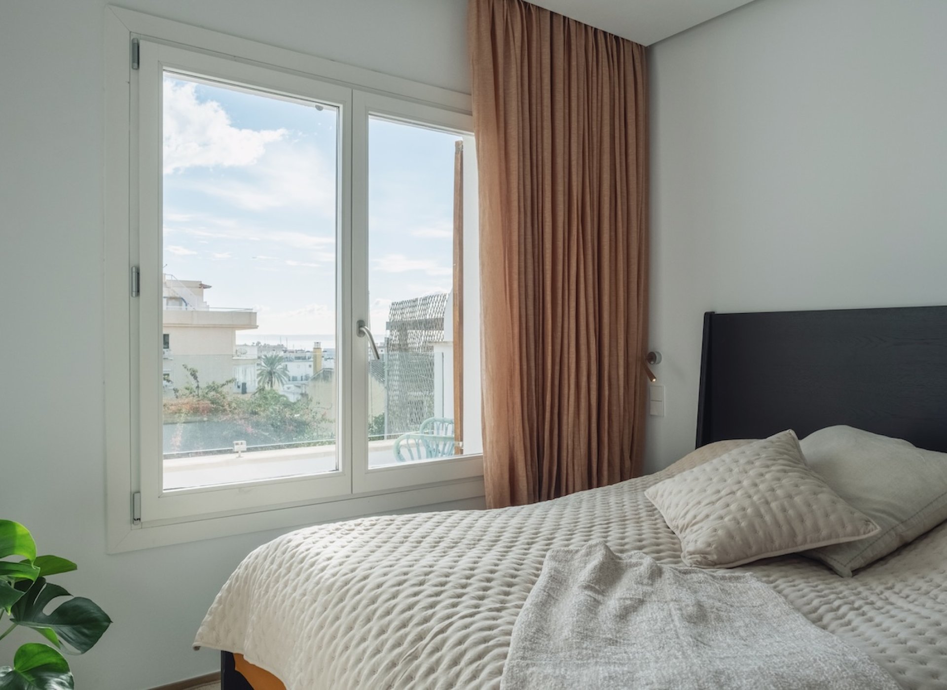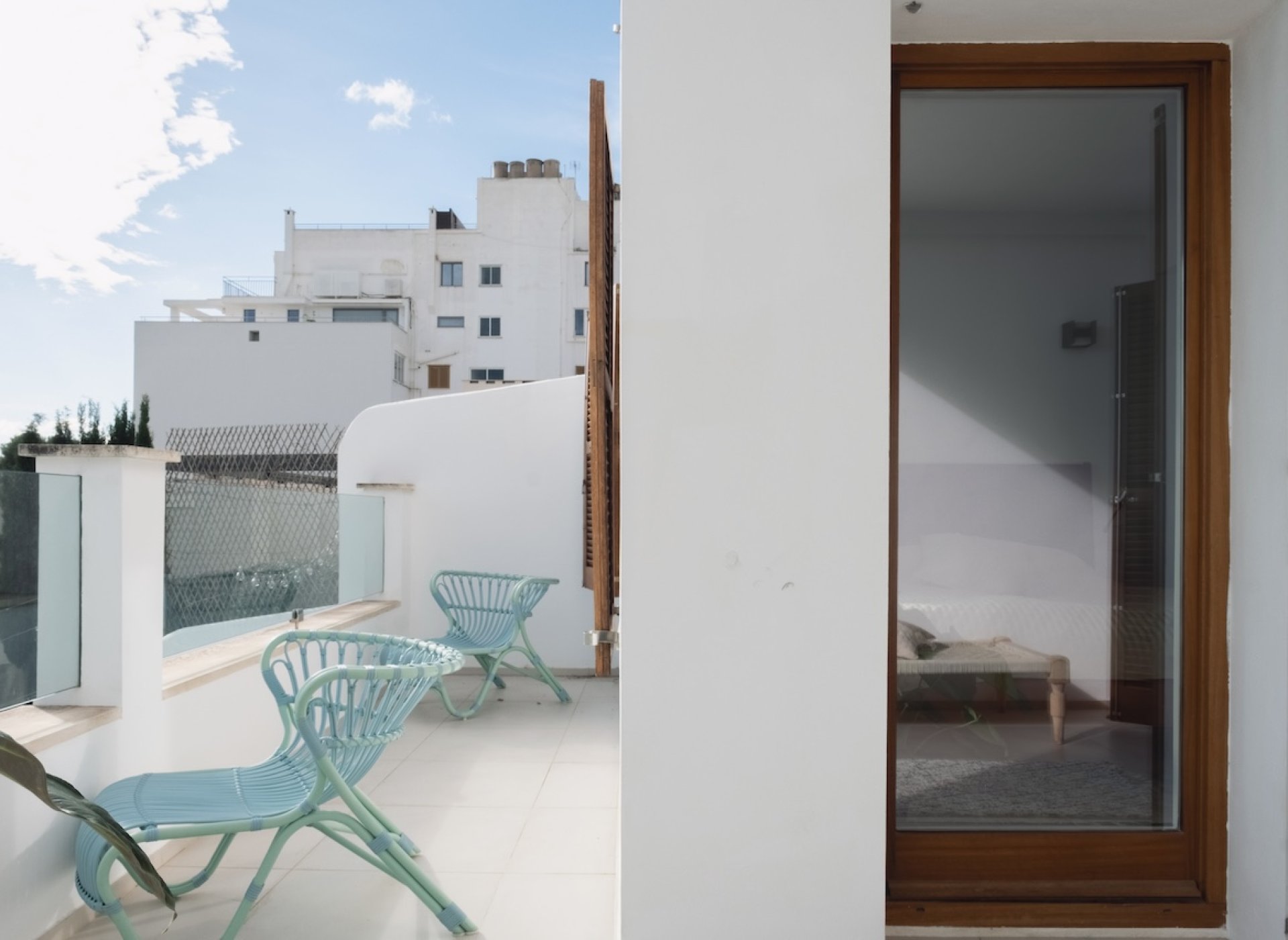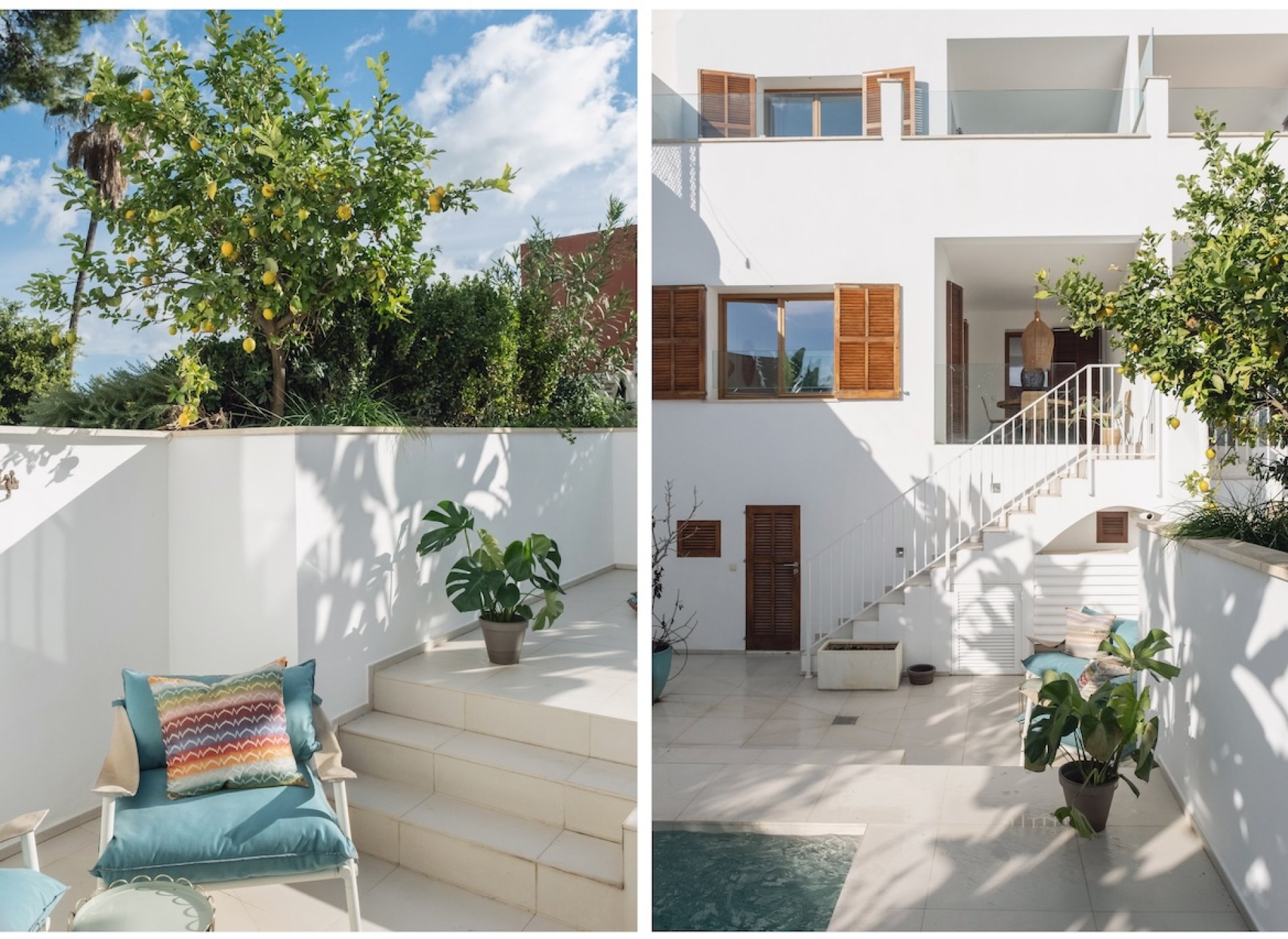 The upper floor offers two bedrooms — two generous doubles with direct access to a private terrace with beautiful sea views. You will also find a full bathroom on this level with a big shower and a bath.