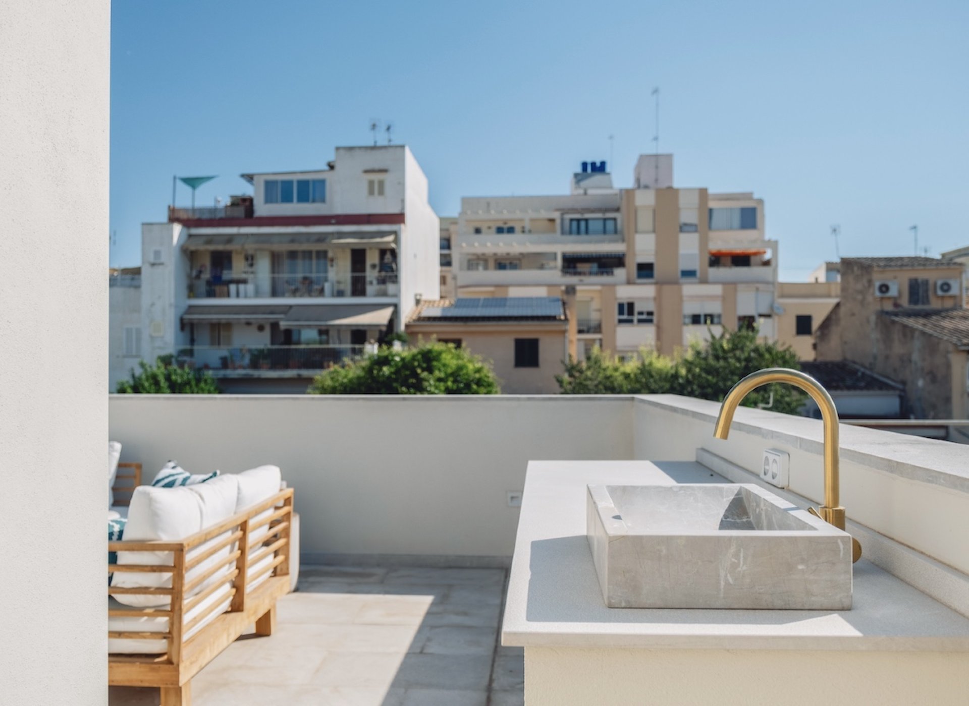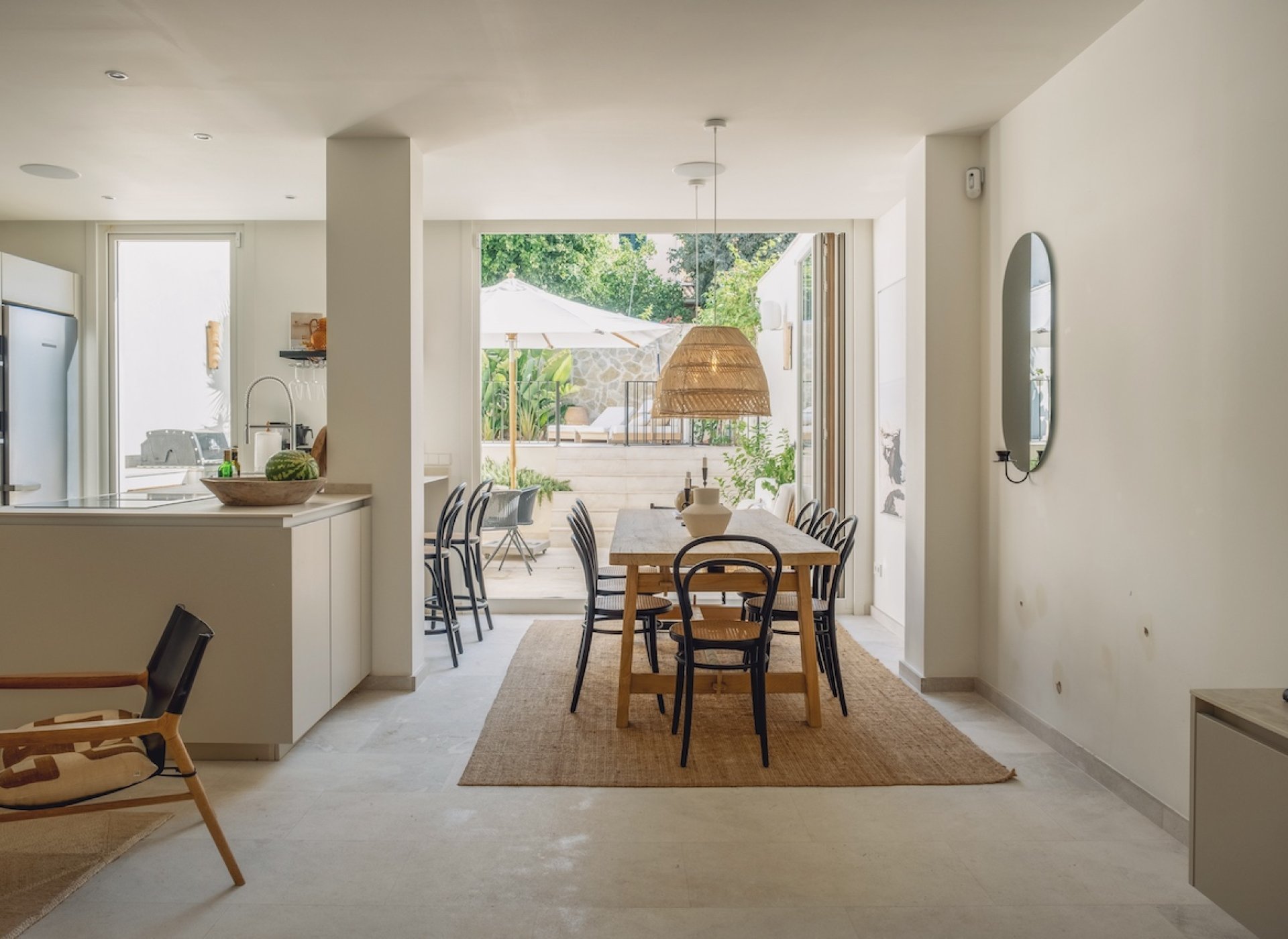 A newly renovated townhouse with ample outdoor space, a private pool, and a rooftop terrace is in Son Espanyolet, one of Palma de Mallorca's most sought-after areas.